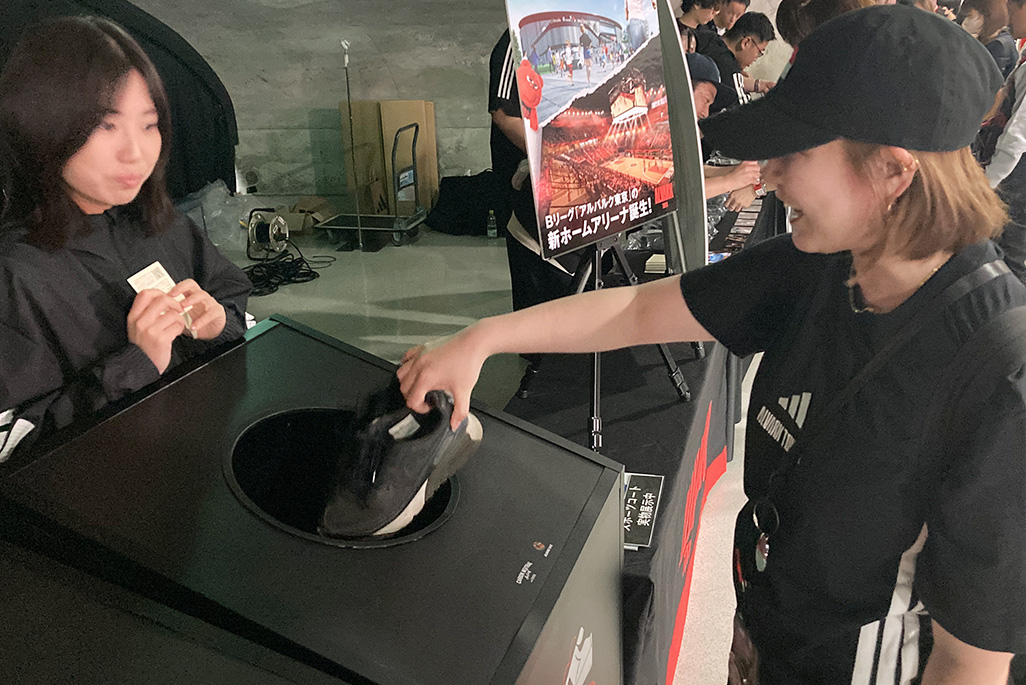 当日は、会場に回収BOXを設置いたしますので こちらの回収BOXにシューズを入れてください。